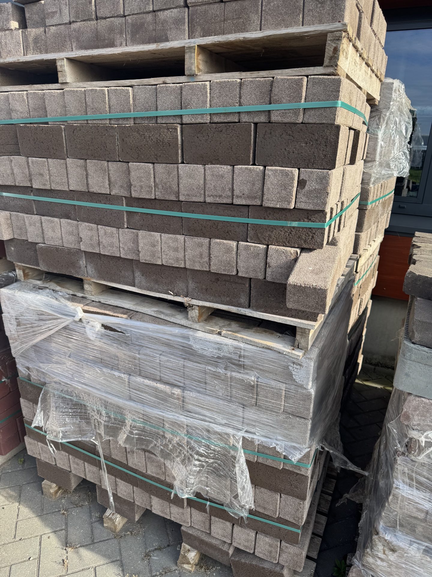 ca 15000 m2 gebakken klinkers op voorraad netjes uitgesorteerd en op pallet gestapeld