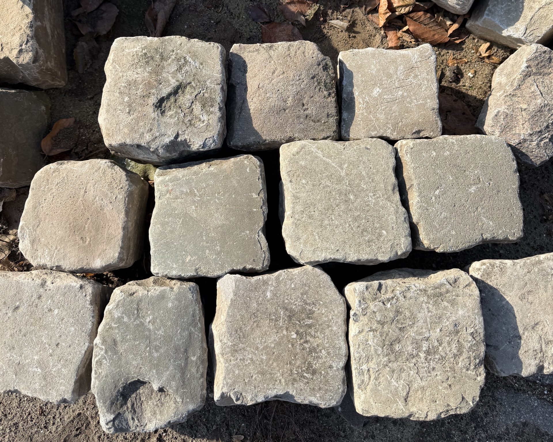 Het voordeel is wel dat ze door hun betrekkelijke hardheid zeer gevoelig zijn geweest voor al het verkeer wat er sinds die tijd overheen is geraast, de keien zijn vaak zo glad/egaal als een biljartlaken door hun gevoelige slijtlaag. En de prachtige diepgrijze kleur komt dan helemaal tot uiting, het is een zeer zeldzaam product waarvan nog maar weinig van op de markt komt, er wordt nog wel geprobeerd om de typische natuurlijke diepgrijze kleur en vorm na te bootsen met producten uit het verre oosten maar de echte authentieke keien zijn onvervalsbaar.