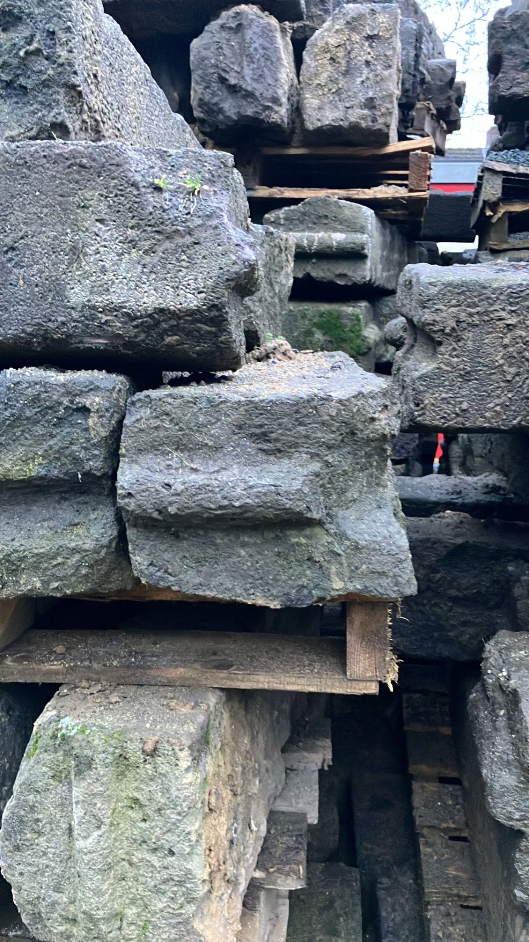 Basalt is een vulkanische natuursteen die bekend staat om zijn extreme hardheid en slijtvastheid. Juist doordat deze banden jarenlang in het straatbeeld hebben gelegen, hebben ze een natuurlijk patina ontwikkeld. Kleine gebruikssporen, subtiele verkleuringen en afgeronde randen geven elke band een eigen karakter.