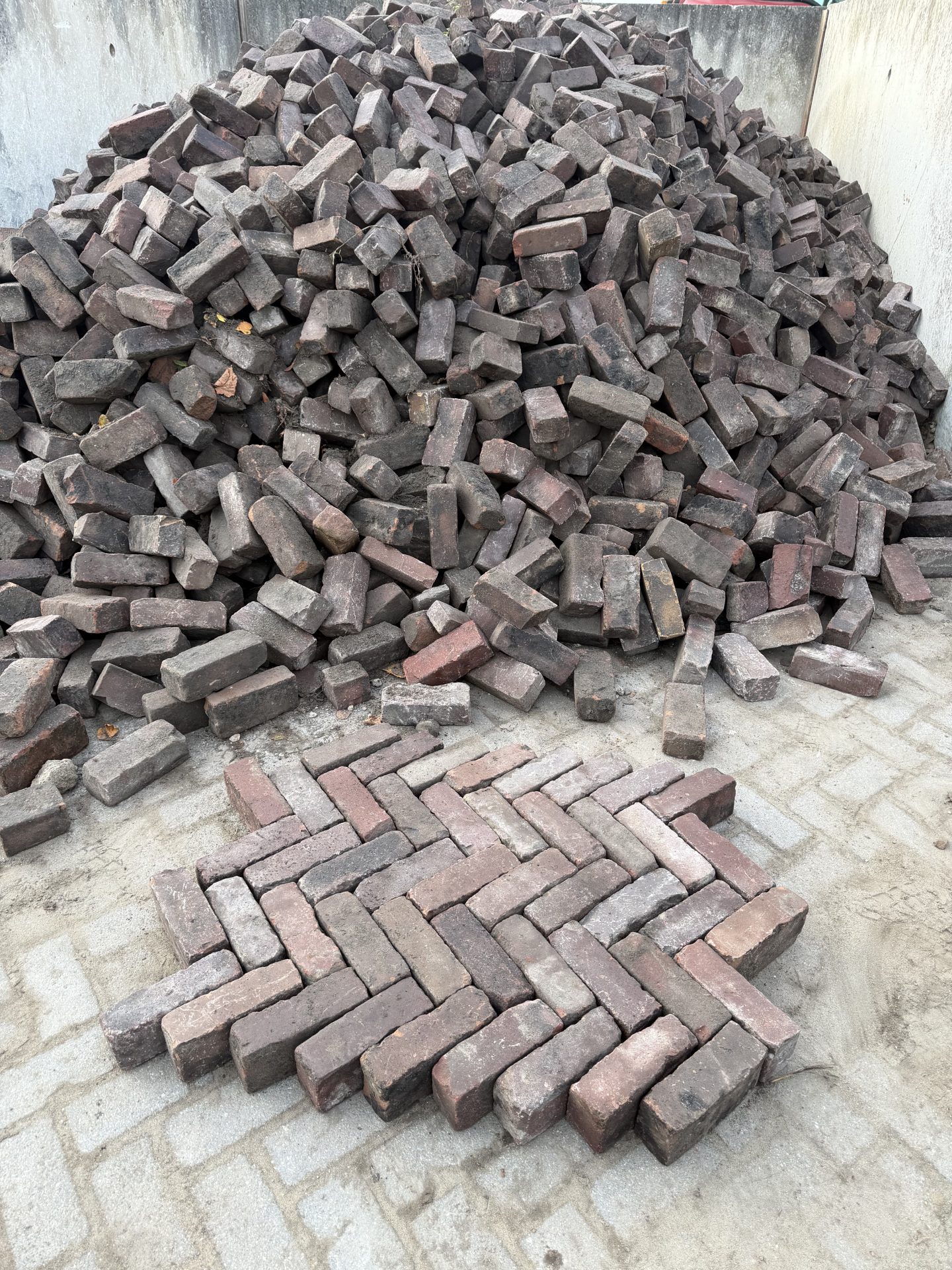 Mooie oude gebakken klinkers zorgvuldig gerooid sorteert en op pallet gestapeld geen breuk