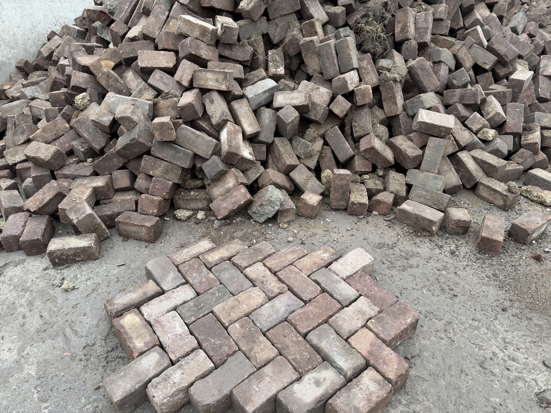 ca 15000 m2 gebakken klinkers op voorraad netjes uitgesorteerd en op pallet gestapeld